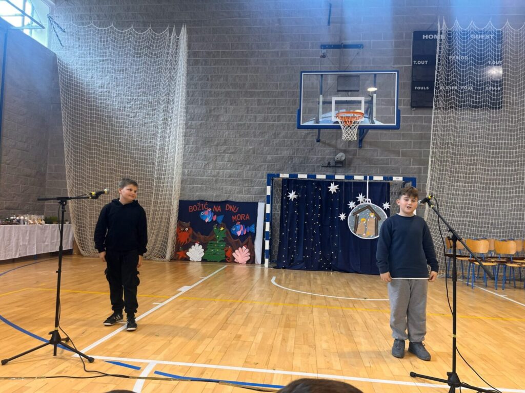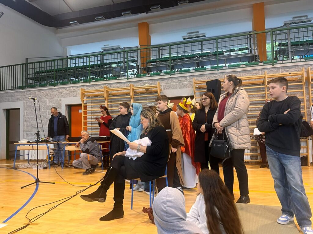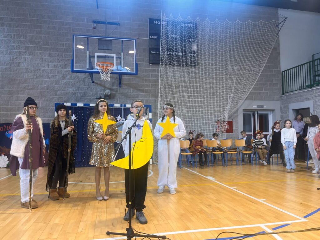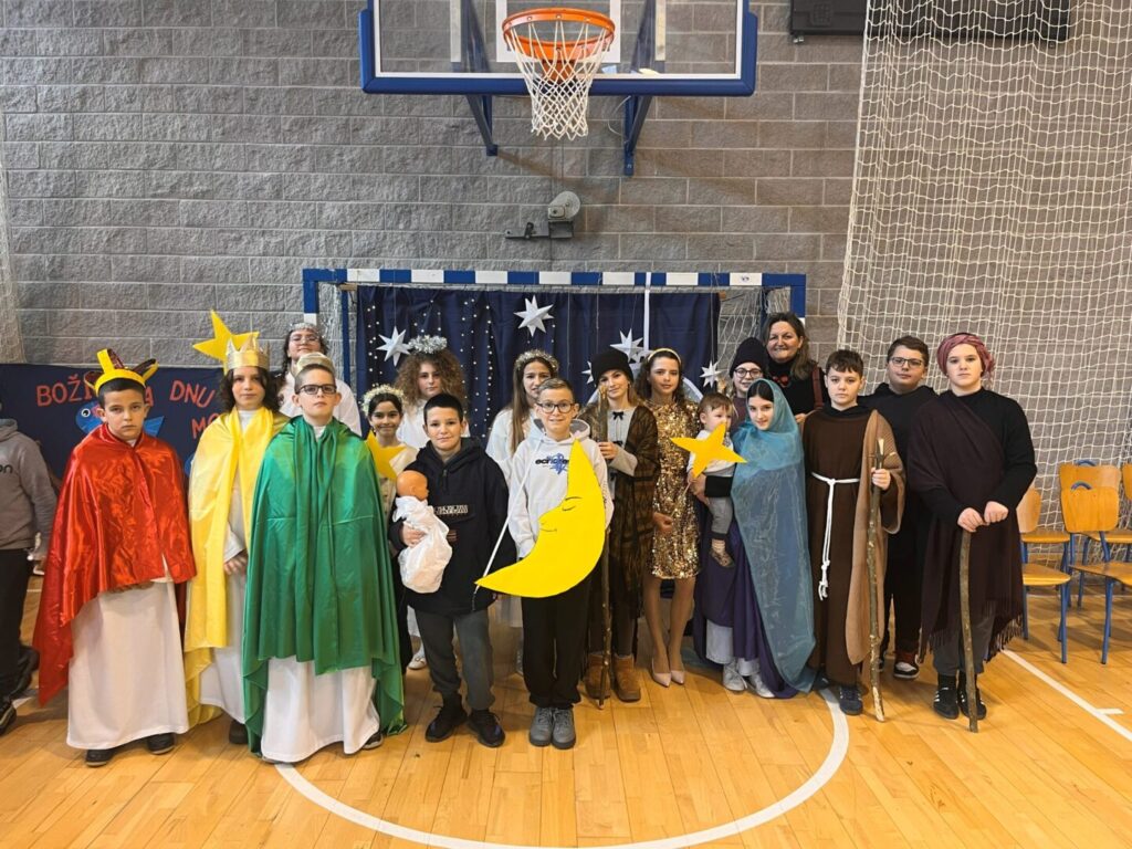 Učenici dramske skupine i vjeronaučne grupe petog, šestog i sedmog razreda pod vodstvom nastavnice Ljilje Šimunović, koji su izveli predstavu Božićna priča. Program su dodatno obogatili nastupi školske klape i tamburaške skupine donoseći na pozornicu duh tradicije. U završnom dijelu programa pozornicu su ispunila djeca iz dječjeg vrtića, koja su svojom spontanošću, pjesmom i igrom izmamila osmijehe i srdačan pljesak svih prisutnih. Zajedničkim glazbenim nastupom mješovitih skupina mlađih i starijih učenika dodatno su istaknute vrijednosti prijateljstva i međusobnog poštovanja kao temelj svakoga sretnog i ispunjenog života.