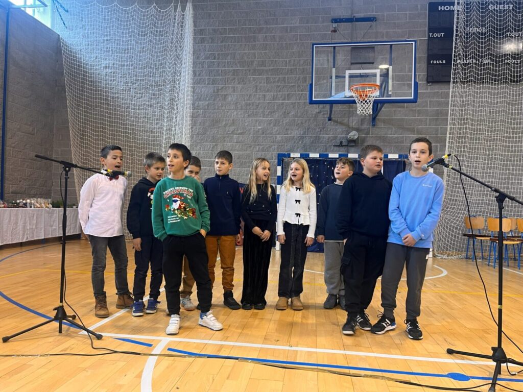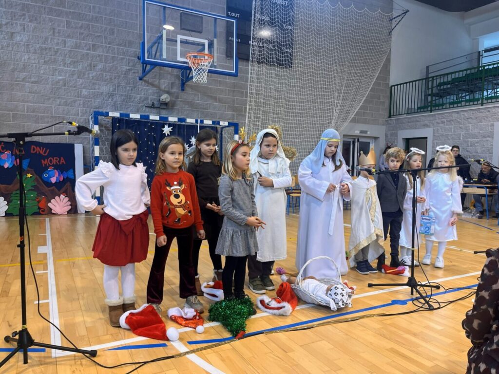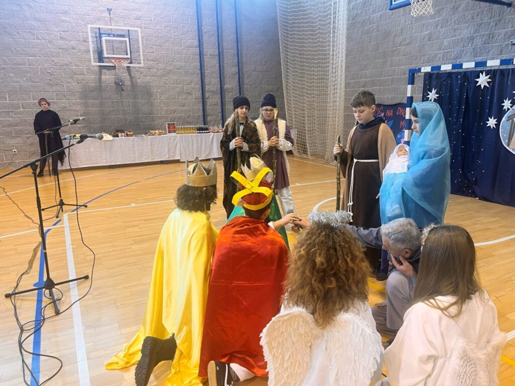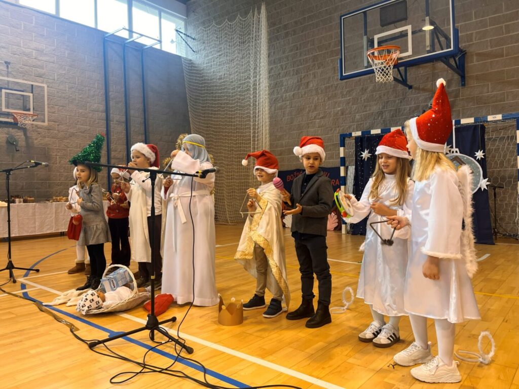 Program je započeo prigodnim božićnim riječima i porukom mira, nade i spasenja, podsjećajući nas da Božić nije samo blagdan svjetla i veselja, nego ponajprije vrijeme suosjećanja, ljubavi i brige za bližnjega. Osobito smo se prisjetili svih onih koji Božić dočekuju u skromnosti, bolesti, neizvjesnosti ili samoći. Upravo tom mišlju vođeni, ove su godine svi prilozi s božićnog sajma namijenjeni pomoći potrebitima, kao skroman, ali iskren znak kršćanske solidarnosti koja oplemenjuje i mijenja svijet. U bogatom i raznolikom programu sudjelovali su učenici svih uzrasta. Učenici prvoga razreda izveli su igrokaz Bijeg u Egipat, a potom su zapjevali Zvončiće. Učenici drugoga razreda izveli su Kolendu i pjesmu Djetešce nam se rodilo, dok su učenici trećega razreda prigodnim recitacijama podsjetili na pravu bit Božića kroz dvije recitacije: Božićno pismo majci, Božićno vrijeme te pjesmu Božić je tu. Učenici četvrtoga razreda priredili su nam igrokaz Svjetlo se ne smije ugasiti koji je pronio snažnu poruku o tome kako svjetlo nade mora uvijek gorjeti u našim srcima, bez obzira na životne poteškoće.