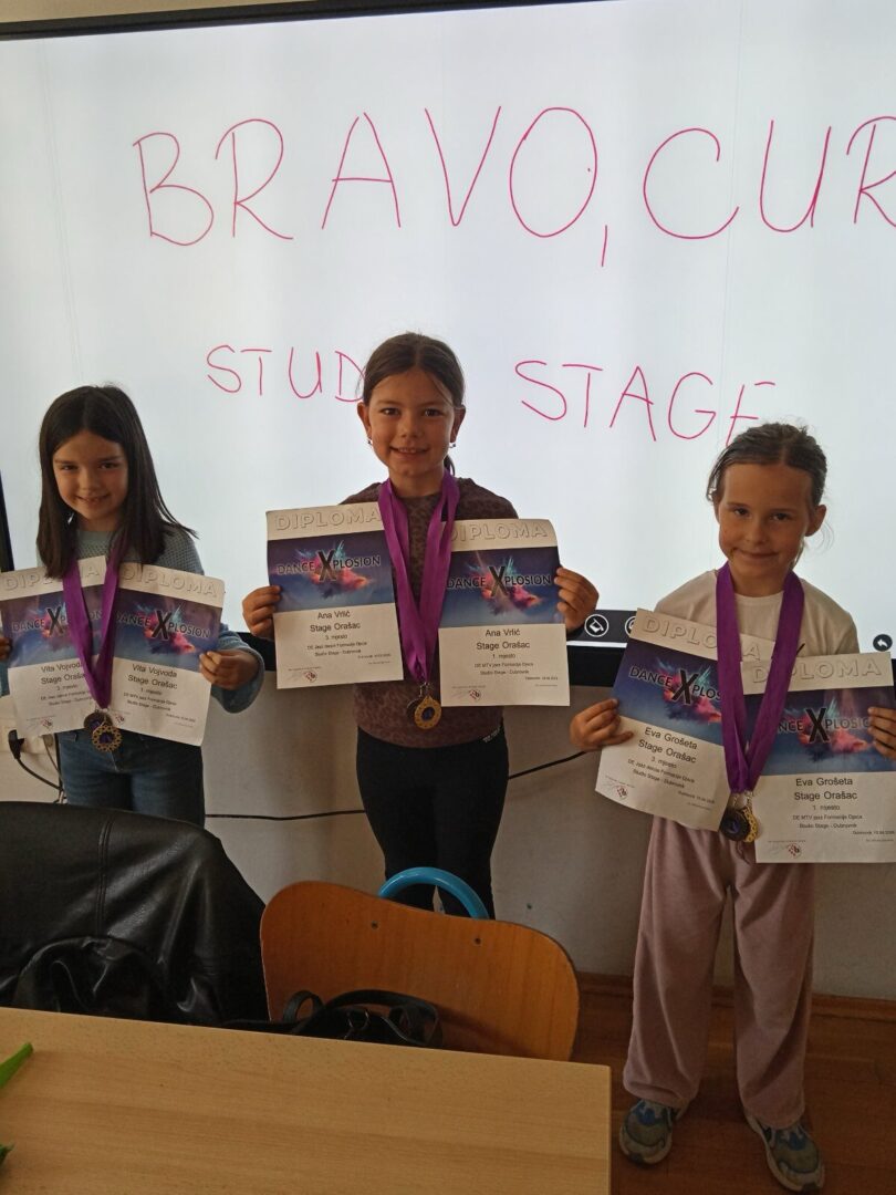 Učenice prvog razreda Eva Grošeta, Vita Vojvoda i Ana Vrlić pohađaju lzvanškolsku aktivnost Ples u Plesnom studiju Stage u Orašcu. Sa svog prvog natjecanja u Župi Dubrovačkoj vratile su se s diplomama i čak dvije osvojene medalje.